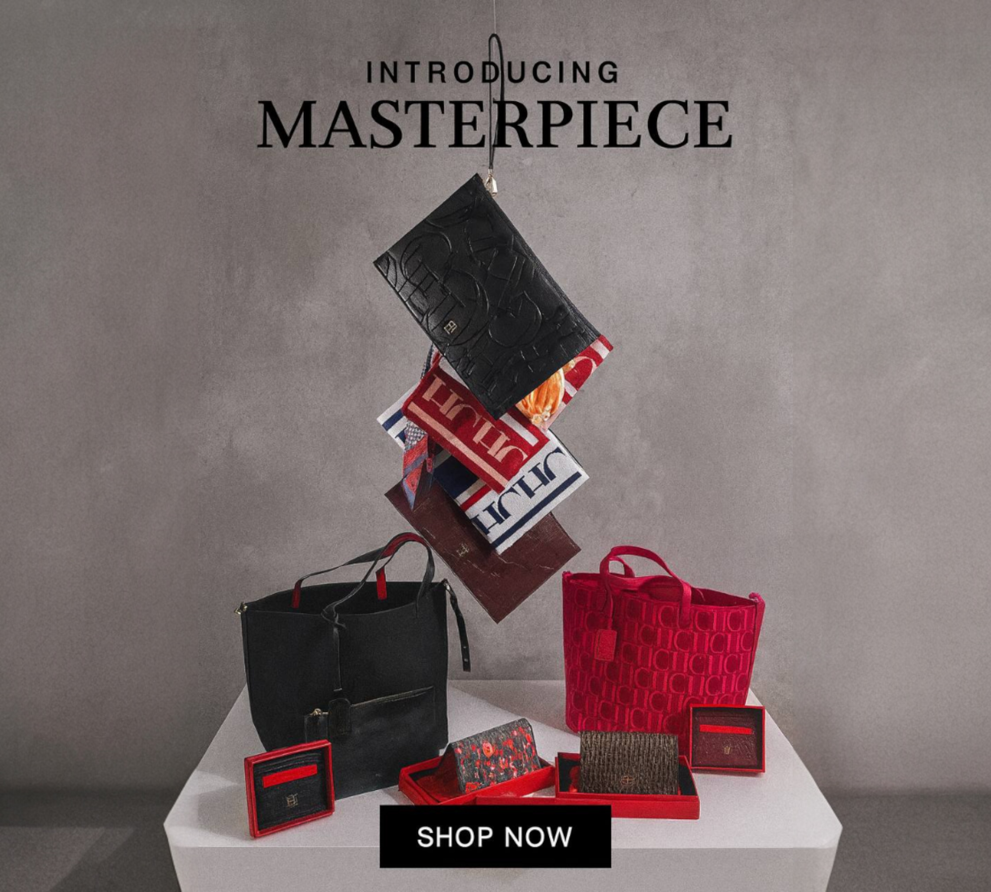 🤎 Carolina Herrera CH Monogram Bronze Leather Card Holder – Gold Logo with Red Gift Box