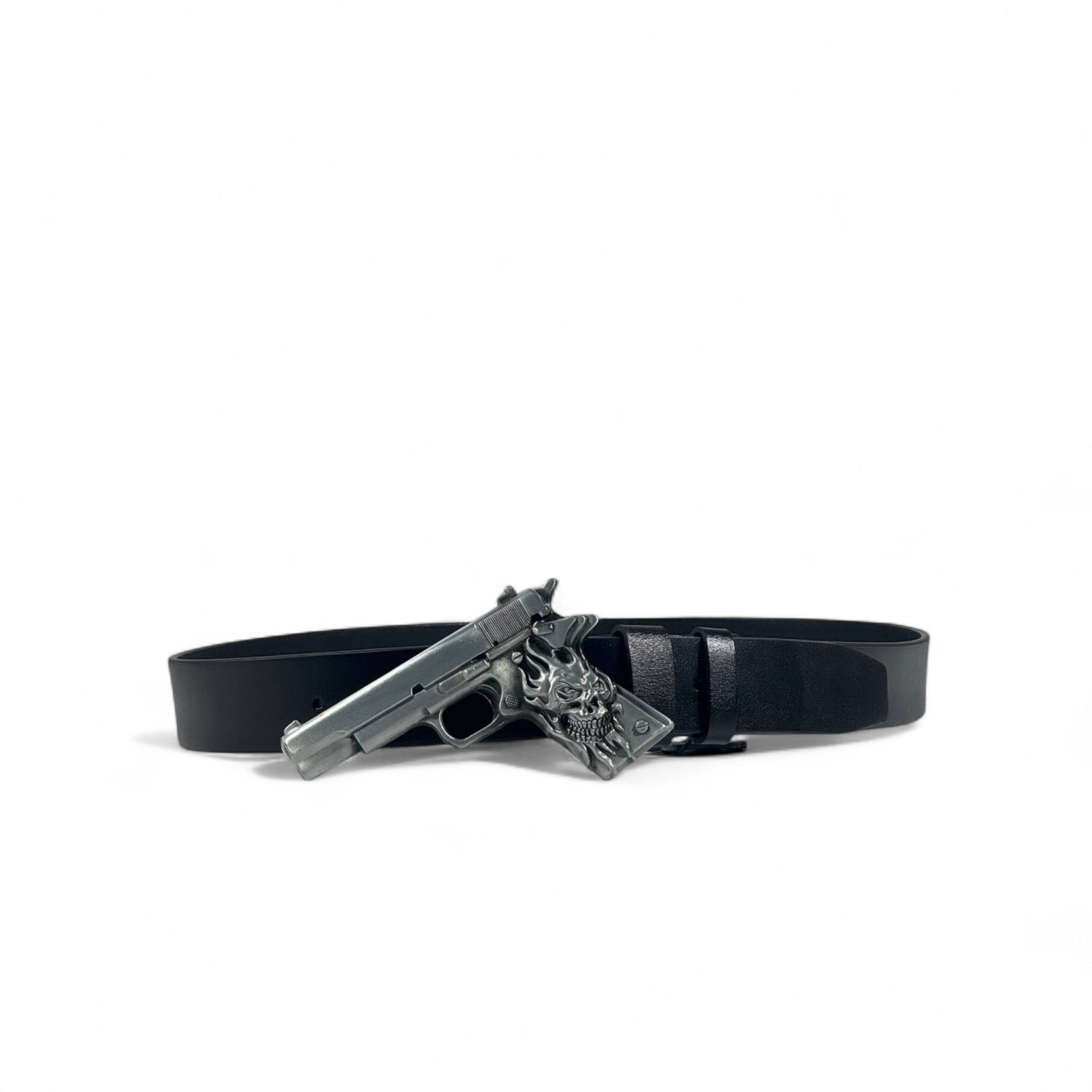 Unleash your bold side with this Gun Buckle Statement Belt, crafted from high-quality leather and designed with a unique pistol buckle finish. Measuring 120 cm, it’s the perfect accessory for those who demand fearless fashion and streetwear attitude.