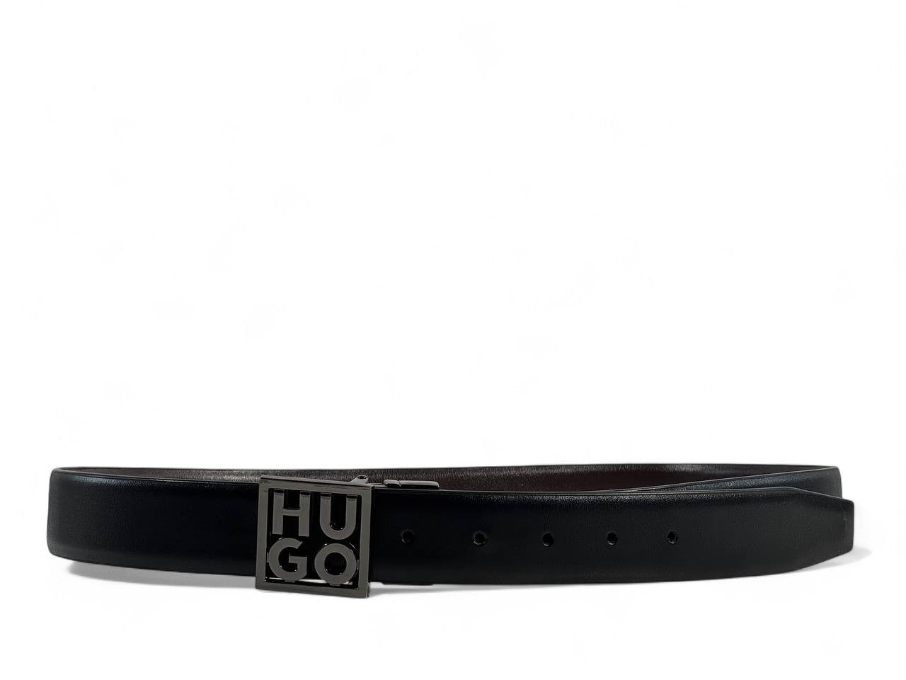 The bold square silver HUGO logo buckle brings a modern edge to any outfit, making it an essential accessory for both casual and formal occasions.